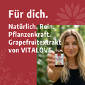Jede Tagesportion (3 × 10 Tropfen) liefert insgesamt 1300 mg Bio Grapefruitkernextrakt mit 18 mg natürlichen Bioflavonoiden. Damit erhältst du einen gehaltvollen Extrakt, der sich optimal in Wasser oder andere Getränke einrühren lässt.