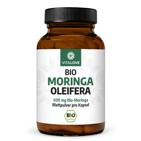 - 600 mg Bio-Moringa-Blattpulver pro Kapsel