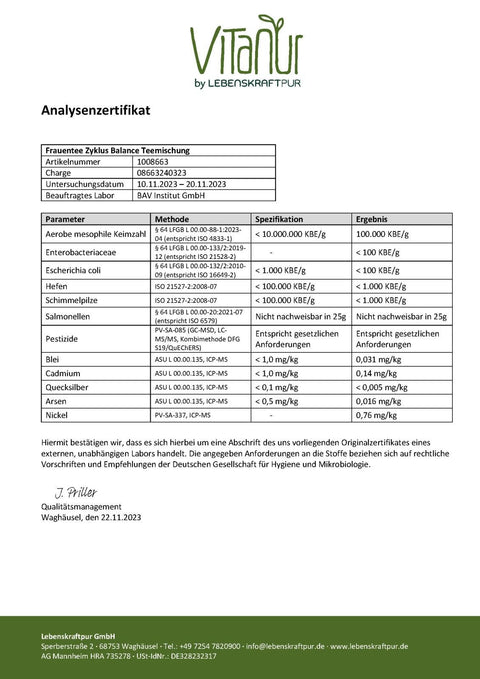 Entdecken Sie die wohltuende Wirkung des Frauentee Zyklus Balance! Diese sorgfältig zusammengestellte Teemischung unterstützt Frauen in allen Lebensphasen und hilft, das Wohlbefinden während des Menstruationszyklus zu fördern. Mit einer harmonischen Kombination aus hochwertigen Kräutern bietet dieser Tee nicht nur einen feinen Geschmack, sondern auch eine natürliche Hilfe zur Regulierung des Zyklus. Genießen Sie die entspannende Wirkung und gönnen Sie sich eine Tasse Wohlbefinden!